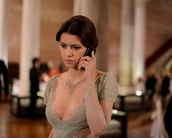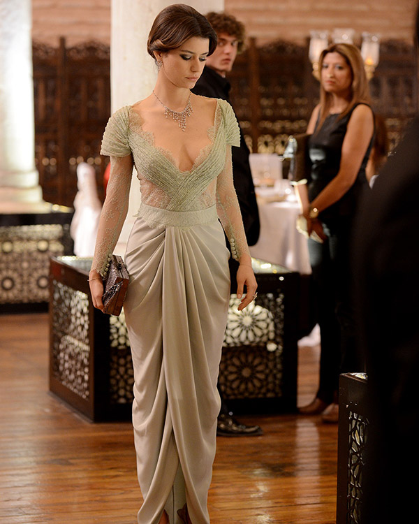 Yağmur’un (Beren Saat) su yeşili elbisesi Özgür Masur tasarımı. Beren Saat kadar Şahika karakterini canlandıran Arzu Gamze Kılınç da kıyafeti ile oldukça konuşulacak.